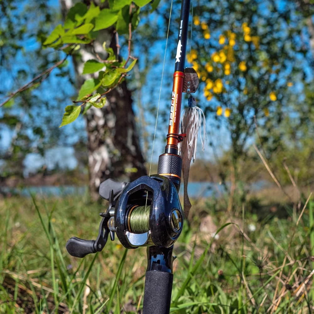 Dotée de l’action idéale pour lancer et animer swimbaits, jerkbaits et autres leurres de 14 à 42 g, ou pour prospecter les herbiers les plus denses avec des “frogs”, elle est aussi très à l’aise avec de spinnerbaits de 1/2 ou 5/8 oz. Idem pour les Cajun Bladed Jigs ou nos shads à palette Slash Blade. Ses dimensions en font une canne très agréable à utiliser en bateau ou en float-tube.