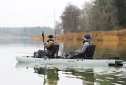 À la puissance des bras, des jambes ou d’un moteur: Bien que la coque élégante du KingFisher soit facilement propulsée par les coups de pagaie traditionnels et que l’utilisation de la bonne vieille pagaie à deux pales reste un moyen extrêmement efficace de se déplacer sur de grandes étendues d’eau agitée, vous voudrez peut-être avoir les bras et les mains libres pour pêcher.