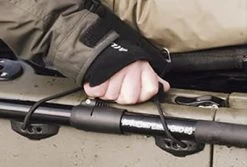 Emplacement pour pagaies: Les emplacements pour pagaies sont situés des deux cotés et retiennent vos pagaies ou votre épuisette
