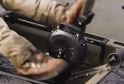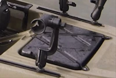 Impulse Drive (en option): L’Impulse Drive s’insère facilement dans son emplacement sur le kayak et vous propulse efficacement vers l’avant et l’arrière grâce à la force des jambes. L’unité d’entraînement à pédale est extrêmement légère.