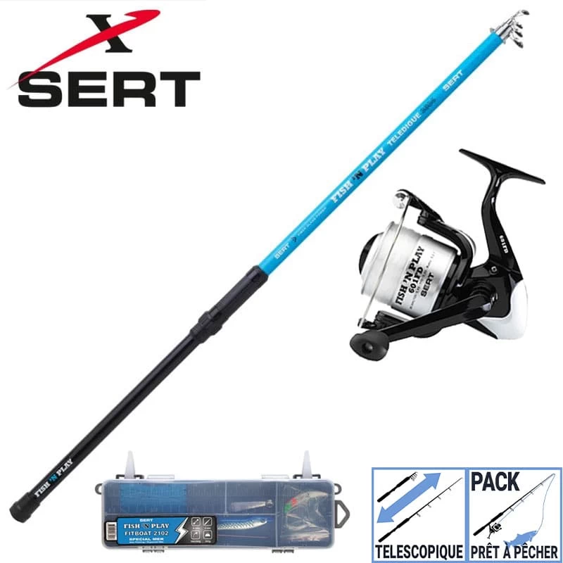 Prêt à pêcher spécialement étudié pour débuter dans la pêche en mer du bord. Ce kit contient un Canne Teledigue 3604, un moulinet 601RD et une box.