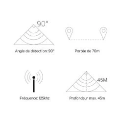- Profondeur de détection de 70cm à 45m max.